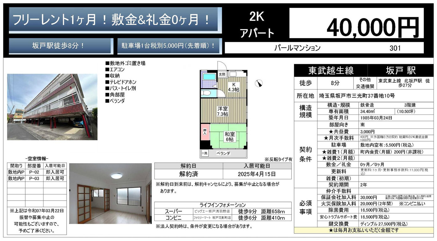【賃貸】坂戸市三光町 2K 40,000円