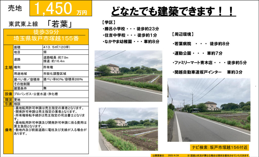 【売土地】坂戸市大字塚越 1,450万円